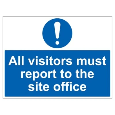 Clearly showing all visitors are required to report to the site office upon arrival to ensure proper safety protocols and access management are followed. Lightweight and easy to transport, these signs are perfect for construction sites and other temporary safety needs. Weather and impact-resistant, making them ideal for both indoor and outdoor environments. Easy to clean and reuse, thanks to the wipeable surface that keeps them looking fresh. Fully recyclable and cost-effective, providing an eco-friendly and budget-friendly solution for temporary signage.
