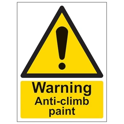 V Safety Warning Anti Climb Paint Portrait 150 x 200 mm 2mm Super Tough Rigid Plastic Sign