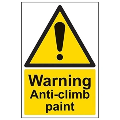 Helps to fulfil legal obligations to inform employees, visitors and the general public of potential hazards as per Health and Safety (Safety Signs & Signals) Regulations 1996 Conforms to EN ISO 7010:2012 - Warning signs feature a triangular symbol with a black pictogram and yellow background occupying at least 50% of the total sign area Portrait Orientation. Sign reads "Warning. Anti-Climb Paint" Highly durable and heavy duty 2mm rigid plastic material Sign measures 200 x 300mm