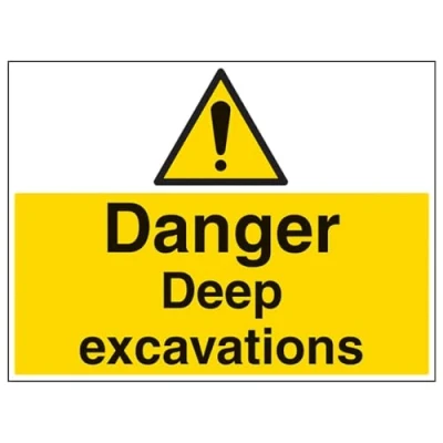 V Safety Warning Building Danger deep Excavation 600 x 450 mm Self Adhesive Vinyl Sign