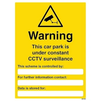 Clearly notifies individuals that the car park is under CCTV surveillance 24/7, ensuring GDPR compliance and transparency regarding data recording. Ideal for placement at all car park entrances and key areas, serving as a constant, visual reminder of active monitoring. Acts as a strong deterrent against theft, vandalism, and other criminal activity, enhancing overall security. Offers a sturdy and reliable construction, ensuring clear and long-lasting safety messaging in any environment. 2mm rigid plastic – Strong, durable, and weather-resistant for indoor and outdoor use.