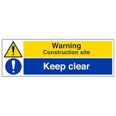 V Safety Warning Construction Site/Keep Clear Landscape 300 x 100 mm Glow In The Dark Self Adhesive Vinyl Sign