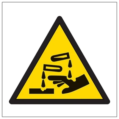 V Safety Warning Corrosive Symbol 100 x mm Glow In The Dark Self Adhesive Vinyl Sign