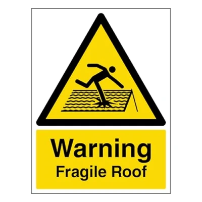 V Safety Warning Fragile Roof Portrait 150 x 200mm 2mm Rigid Plastic Sign