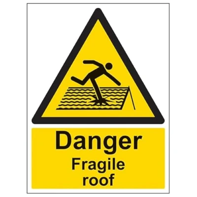 V Safety Warning General Danger fragile roof 450 x 600 mm Self Adhesive Vinyl Sign
