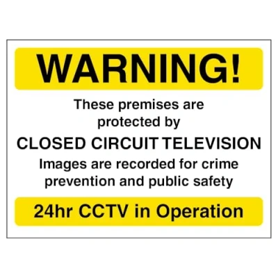 V Safety Warning! Premises Protected By CCTV (Yellow) Sign 200mm x 150mm Self Adhesive Vinyl
