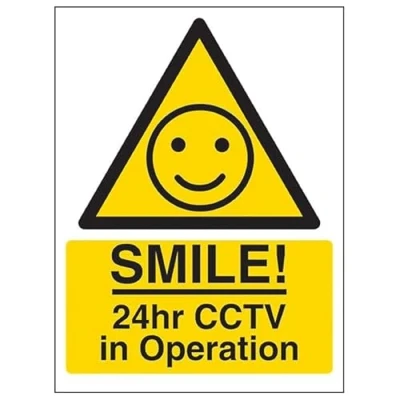V Safety Warning SMILE! 24hr CCTV In Operation 100 x 150 mm Glow The Dark Self Adhesive Vinyl Sign