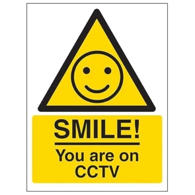 V Safety Warning SMILE! You Are On CCTV 100 x 150 mm 3mm Aluminium Composite Sign