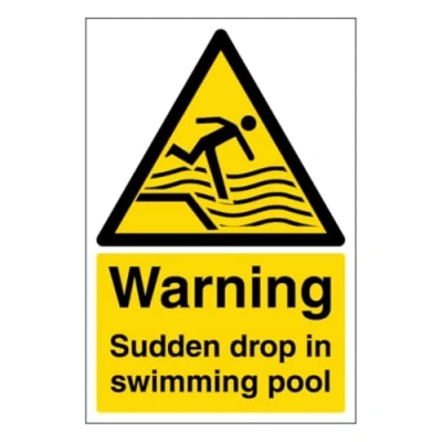V Safety Warning Sudden Drop In Swimming Pool Portrait 150 x 200mm 1mm Rigid Plastic Sign