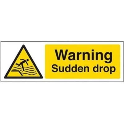 Ideal for use in kitchens and toilets to highlight any sources of hot water which could scald or injure Conforms to EN ISO 7010:2012 - Warning signs feature a triangular symbol with a black pictogram and yellow background occupying at least 50% of the total sign area Landscape Orientation. Sign reads "Warning. Sudden Drop" Highly durable 1mm plastic material and screen printed message will stand the test of time Sign measures 300 x 100mm