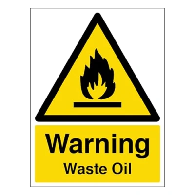 V Safety Warning Waste Oil Portrait 300 x 400mm 1mm Rigid Plastic Sign