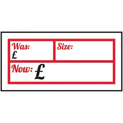 V Safety Was/Size/Now £ Sticker 51x25mm (Roll of 250)