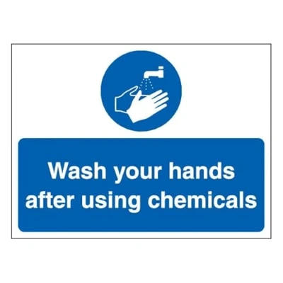 V Safety Wash Your Hands After Using Chemicals Landscape 400 x 300 mm Sign 2mm Super Tough Rigid Plastic