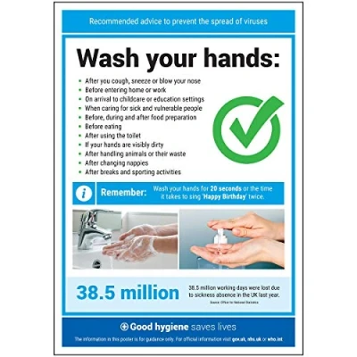 Striking design with clear messaging presents vital information with impact to reinforce recommended hygiene protocol Ideal for display around all premises - demonstrates a commitment to enforcing good hygiene practices Significantly more professional in appearance than self-printed materials Printed directly on to 0.2mm polypropylene for crisp, high image quality Highly durable and resistant to tearing - made to stand the test of time, unlike other paper laminated alternatives, Weight: 0.0661386786 pounds, Manufacturer: VSafety Ltd.