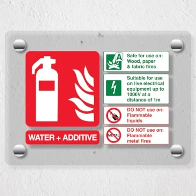 V Safety Water + Additive Fire Extinguisher 150 x 100 mm Acrylic Perspex Cast Clear Sign