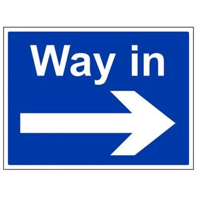 V Safety Way In, Arrow Right Sign 400mm x 300mm 1mm Rigid Plastic
