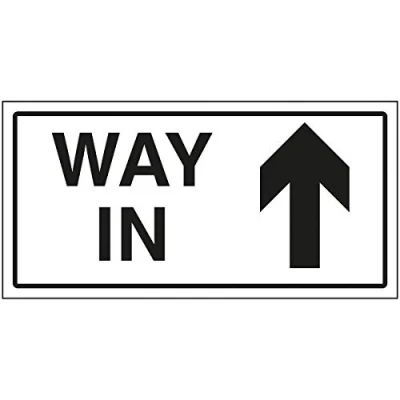 V Safety Way In Arrow Up Sign 300x150mm Self Adhesive Aluminium Effect