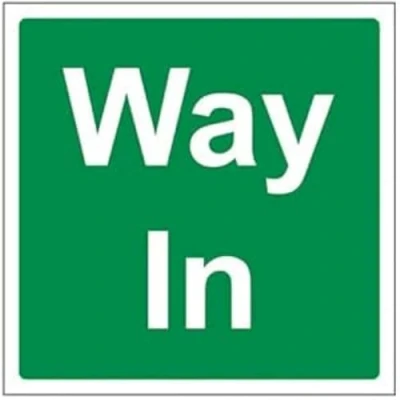 Helps to fulfil legal obligations to inform of the direction in which safety can be reached as per Health and Safety (Safety Signs & Signals) Regulations 1996 Conforms to EN ISO 7010:2012 by featuring a green background with a white pictogram or text positioned centrally Square Orientation. Sign reads "Way In" Highly durable 1mm plastic material and screen printed message will stand the test of time Sign measures 150 x 150mm