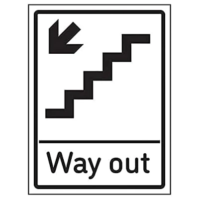 V Safety Way Out Arrow Down Stairs Left 200mm x 300mm 3mm Aluminium Composite