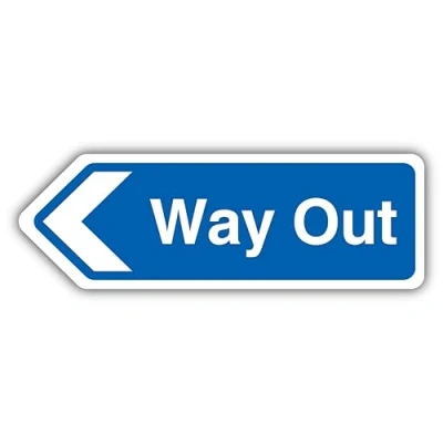 V Safety Way Out Arrow Left Shaped Sign 300 x 100 mm Glow In The Dark 1mm Rigid Plastic
