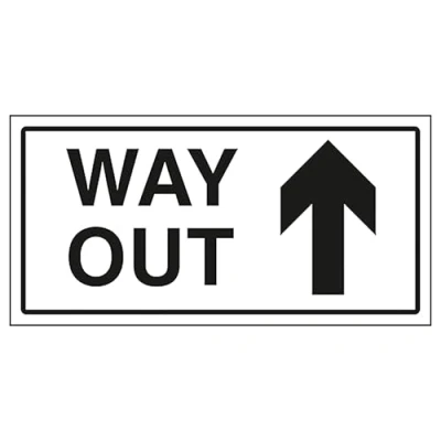 V Safety Way Out Arrow Up 300 x 150 mm 1mm Rigid Plastic Sign