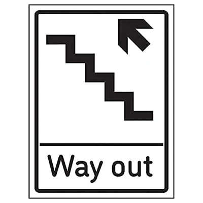 V Safety Way Out Arrow Up Stairs Left 200mm x 300mm 1mm Rigid Plastic