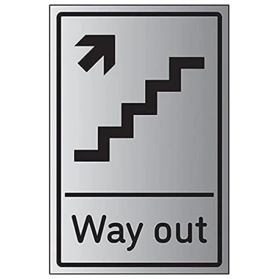 V Safety Way Out Arrow Up Stairs Right 150mm x 200mm 1.6mm Aluminium Effect Rigid Plastic