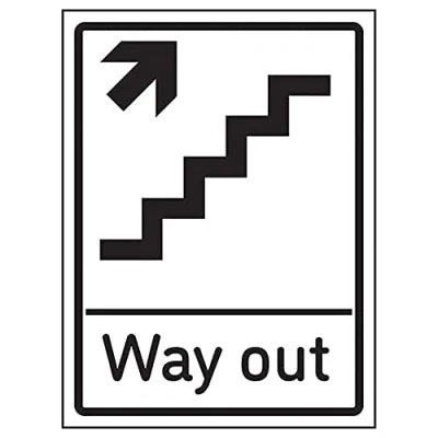 V Safety Way Out Arrow Up Stairs Right 200mm x 300mm 3mm Aluminium Composite