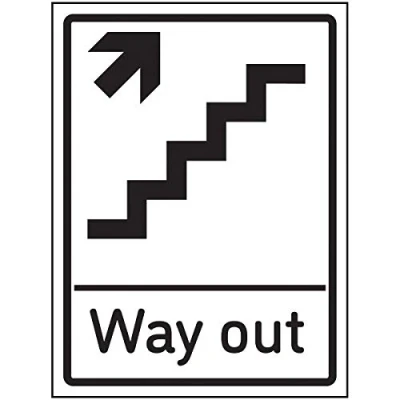 V Safety Way Out Arrow Up Stairs Right Sign 150x200mm Self Adhesive Aluminium Effect