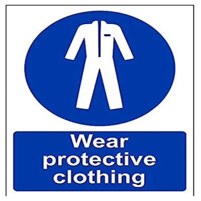 Helps to fulfil legal obligations to remind staff and visitors to wear the appropriate PPE when required to ensure personal safety as per Health and Safety (Safety Signs & Signals) Regulations 1996 Conforms to EN ISO 7010:2012 - Mandatory Signs feature a round symbol with a blue background of at least 50% of the total sign area with a white pictogram and text Portrait Orientation. Sign reads "Wear Protective Clothing" Highly durable Self Adhesive Vinyl material and screen printed message will stand the test of time Sign measures 150 x 200mm. Self Adhesive material will adhere securely to most surfaces