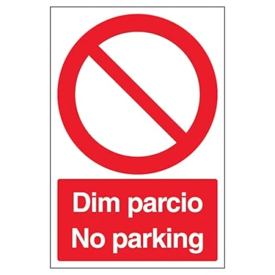 V Safety Welsh/English No Parking Portrait 200 x 300mm 3mm Aluminium Composite Sign