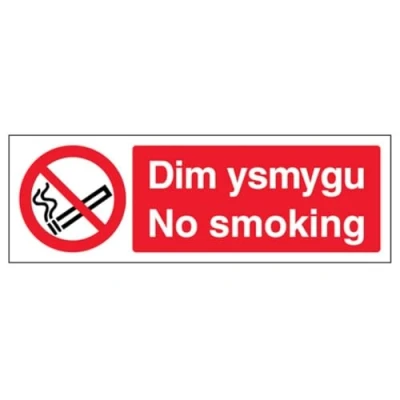 V Safety Welsh/English No Smoking Landscape 450 x 150 mm 2mm 100% Recycled Rigid Plastic Sign