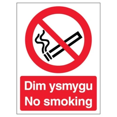 V Safety Welsh/English No Smoking Portrait 150 x 200mm 2mm Rigid Plastic Sign