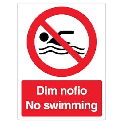 V Safety Welsh/English No Swimming Portrait 150 x 200mm 2mm Rigid Plastic Sign