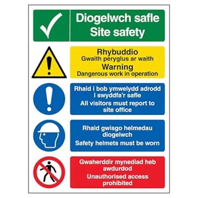 V Safety Welsh/English Site Warning 300 x 400 mm Self Adhesive Vinyl Sign