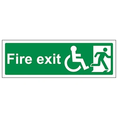 V Safety Wheel Chair Final Fire Exit With Text Man Right Landscape 450 x 150 mm 3mm Aluminium Composite Sign