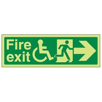 V Safety Wheel Chair Fire Exit with Text Arrow Right 900 x 300 2mm Rigid Plastic Sign