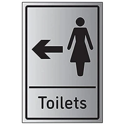 V Safety Womens Toilets Arrow Left 200mm x 300mm 3mm Brushed Aluminium Composite