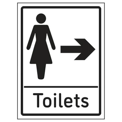 V Safety Womens Toilets Arrow Right 150 x 200 mm 2mm Super Tough Rigid Plastic Sign