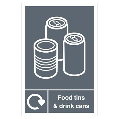 V Safety WRAP Food Tins And Drink Cans Recycling 200 x 300mm 1mm Rigid Plastic Sign