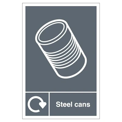 V Safety WRAP Steel Cans Recycling 200 x 300mm 1mm Rigid Plastic Sign