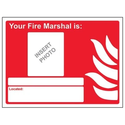 Helps fulfil obligations to convey essential information relating to fire fighting equipment as per Health and Safety (Safety Signs & Signals) Regulations 1996 Conforms to EN ISO 7010:2012 Landscape Orientation. Sign reads "Your Fire Marshal Is:" Highly durable Self Adhesive Vinyl material and screen printed message will stand the test of time Sign measures 200 x 150mm. Self Adhesive material will adhere securely to most surfaces