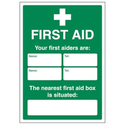 V Safety Your First Aiders Are Nearest Aid Box 210 x 297 mm (A4) 2mm Rigid Plastic Sign