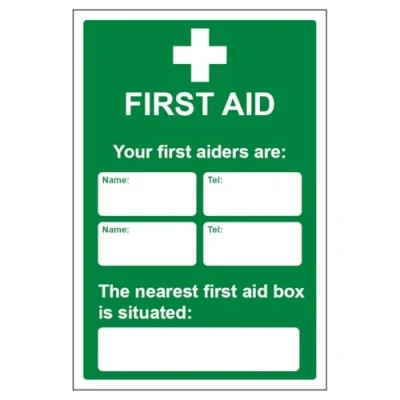 V Safety Your First Aiders Are Nearest Aid Box 300 x 400 mm Glow In The Dark 1mm Rigid Plastic Sign