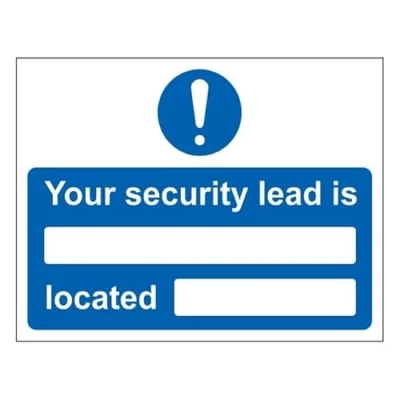 Clearly mark your Security Lead for easy identification and quick response during emergencies. Specifically designed to help schools comply with DfE recommendations, ensuring all staff are aware of the appointed Security Lead. Reinforces your commitment to site safety and provides reassurance to staff, students, and visitors. Features a convenient write-on section to display the name and details of your Security Lead. Available in a variety of sizes and materials, meeting Health and Safety (Safety Signs and Signals) Regulations 1996 and conforming to EN ISO 7010 standards.