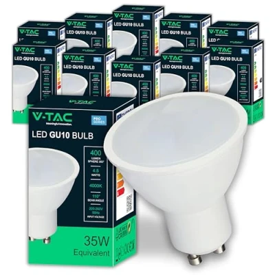 V TAC 10 x GU10 4.5W LED Bulbs (35W Equivalent) 400 Lumen Spot Light for Maximum Efficiency and Energy Saving Neutral White 4000K