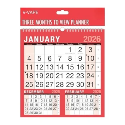 V VAPE 2025 Spiral Bound Three Month To View Wall Planner Calendar