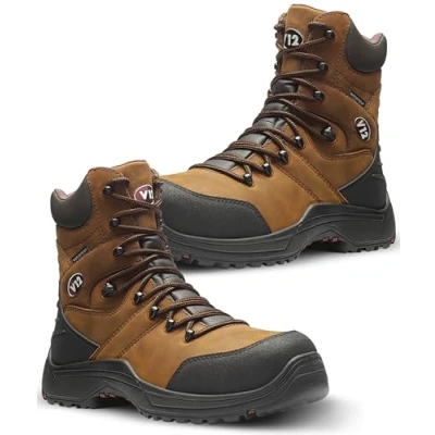Built For Tough Jobs: These V12 Rocky IGS men’s safety boots are certified to EN ISO 20345:2011 S3 HRO SRC, featuring a wide composite toe cap and a puncture-resistant woven fibre midsole. Durable, lightweight and 100% metal-free—ideal for high-risk environments. Ultimate Waterproof Boots: With a waterproof oiled full grain leather upper, waterproof lining, and a covered zip plus bellows tongue, these waterproof work boots keep water, mud, and debris out. Perfect safety waterproof boots for wet, muddy job sites. Extreme Comfort: The composite toe work boots have a heel-pump shock absorbing footbed that reduces fatigue and encourages airflow to keep your feet cool, dry and odour-free. A rugged ankle support enhances comfort and reduces strain during long hours on site. Easy On, Easy Off – Designed For Everyday Wear: These men's work boots feature a convenient side zip plus lace-up front for secure fit and easy on-off access. Wide fit comfort makes them ideal for all-day wear across a range of industries. IGS Sole Technology: Inspired by tyre tread design, the slip-resistant sole delivers top-tier grip on all terrains with hexagonal lugs, ladder grips, and a re-engineered heel strike zone for water dispersal. Heat resistant up to 300°C and resistant to oils, acids, and alkalis.