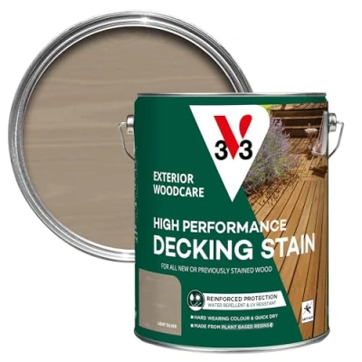 V33 High Performance Decking Stain Light Silver 5L Biosourced Formula Anti Slip Quick Dry UV Resistant Hard Wearing Long Lasting Weather Protection