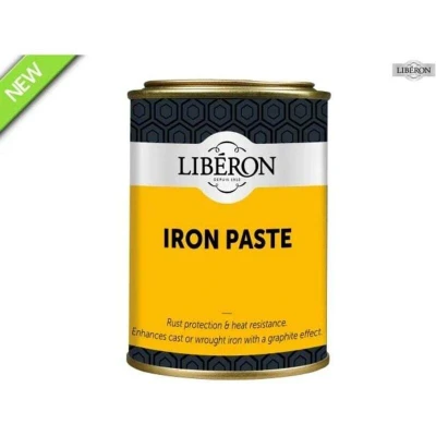 General description This product is a black graphite paste designed for protecting and decorating cast and wrought ironwork. It creates a durable coating that reduces rusting and can be buffed to a high shine. Ideal for ornamental ironwork, cast iron grates, fire irons, and fireplace surrounds, especially during renovation projects. Technical specifications Dry time: minimum 4 hours Application area: interior Application method: brush or cotton cloth Tool cleaning: white spirit Compatibility and accessories Suitable for cast iron and wrought iron surfaces. Installation Apply the paste using a brush or cotton cloth to clean, dry surfaces. Allow at least 4 hours to dry before handling or further use. Usage Use on non-working cast iron fireplaces, surrounds, ornamental ironwork, and fire irons. Buff to a high shine if desired after drying. Other information 1 x Liberon Iron Paste 250ml.